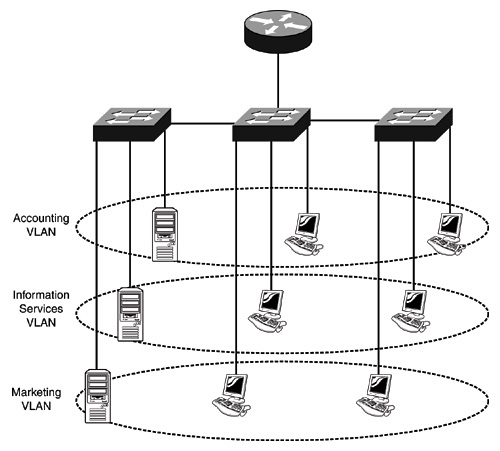 اگر ما یک ساختمان اداری را فرض کنیم که شامل 50 کامپیوتر صنعتی و 5 سرور قدرتمند باشد، می توانیم VLAN را برای سرورها و کامپیوترهای صنعتی به صورت مجزا ایجاد کنیم. برای برقراری ارتباط بین سرورها و کامپیوترهای صنعتی می شود از سوییچ های مدیریتی لایه 3 برای مسیریابی و فیلتر کردن این ترافیک یا از روترها به صورت مجزا استفاده کرد.